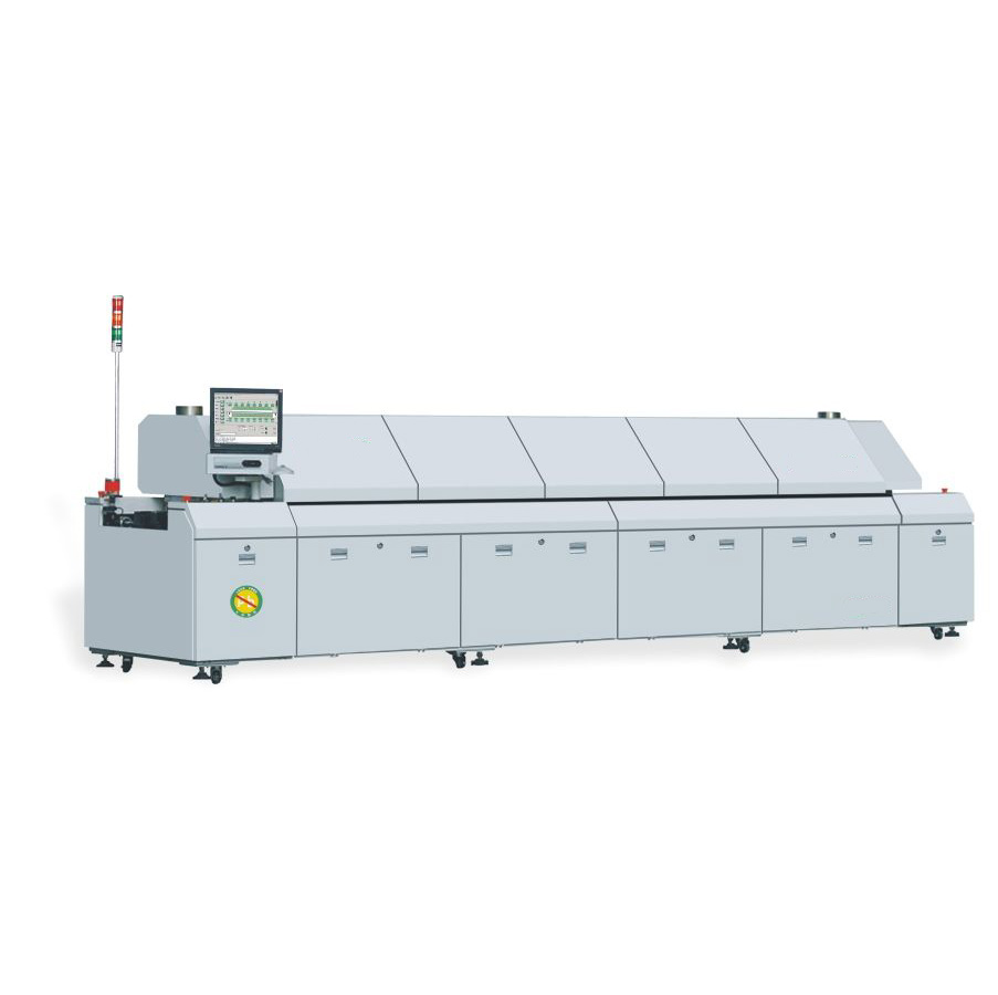 SMT Vacuum 设备主要针对SMT 表面贴装生产工艺,是热风强对流加热回流炉,适用于所有SMT 焊锡膏的温度设定要求, 做氮气保护制程;尤其对焊接气泡和空洞缺陷有显著的改善, 可以减少 99%的空洞率。即使无需真空制程,也可以作为普通回流炉使用,做到一机多用,SMT 回流加真空炉是全球首家具有在线真空的回流炉;
