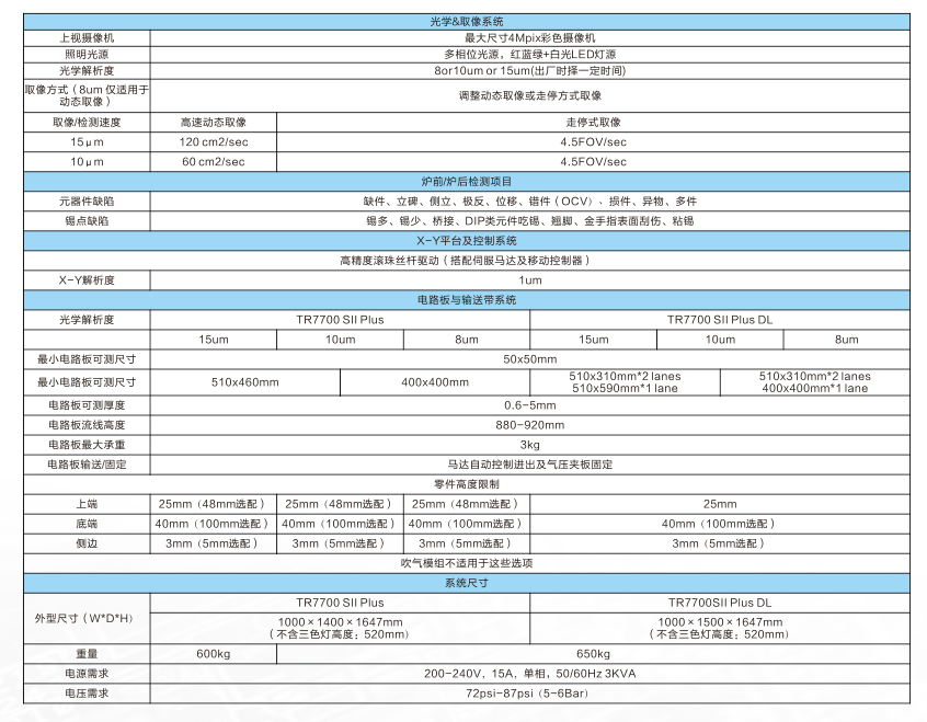 1、是世界首款混合在线型的自动光学检测机:TR7700 SII PIUS
